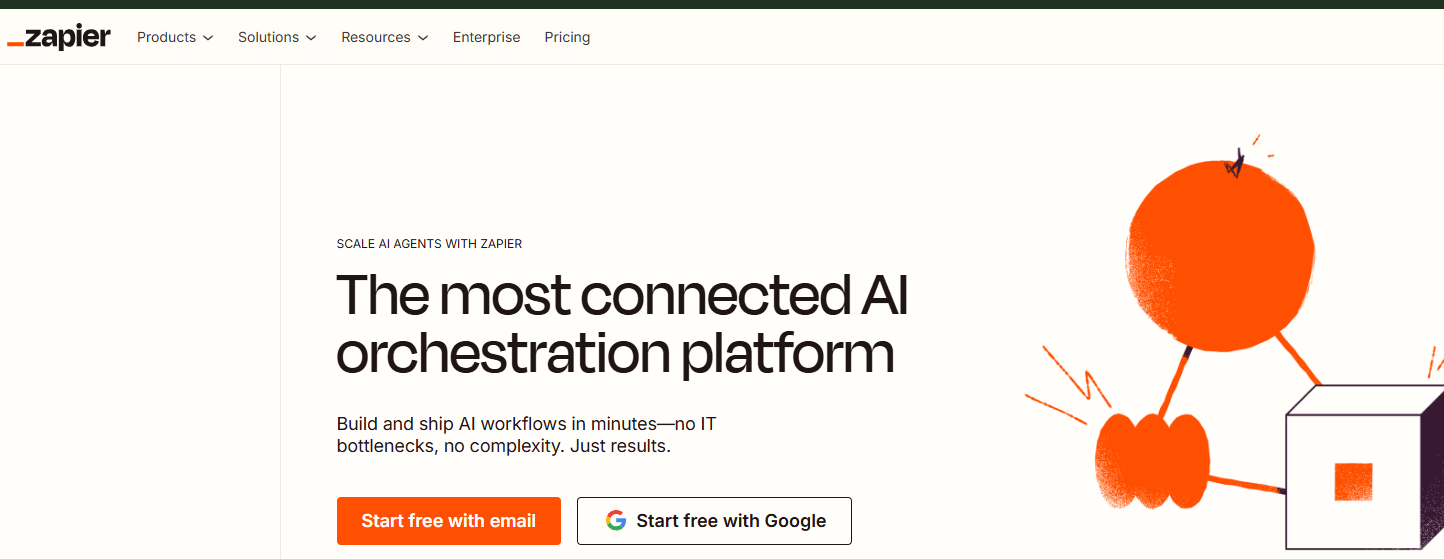 Zapier는 비개발자를 위한 최고의 자동화 도구입니다. 이 도구는 서로 다른 앱 간의 작업을 연결해줍니다. 예를 들어, 새 이메일이 도착하면 이를 Google Sheets에 자동으로 기록하거나, Slack 메시지를 Trello 카드로 전환할 수 있습니다.