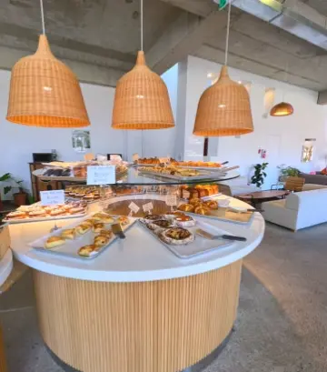 토곡요가기 전에 점심을 먹고 갔는데요. 먹음직스러운 빵코너를 그냥 지나칠 수가 없더라고요. 각자가 좋아하는 음료와 빵을 구매하고 넓은 정원을 풍경으로 자리를 잡았습니다.